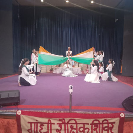 A four-day Gandhi Jayanti camp was organized from 6th October to 9th October 2025 with the objective of inspiring students to adopt Gandhian values and principles in their lives. Different sessions of the camp were inaugurated by renowned educationists and professors from various universities and colleges. The Shivir was inaugurated by Sh. Raghav Prakash, Director Parishkar College of Global Excellence, Jaipur. The second day of camp was inaugurated by Shri Gurdev Singh, Secretary of our Sansthan and the third day by Shri Naresh Dadhich, Former VC Mahavir Kota Open University. The guest of the last day’s programme was Shri Rajendra Sharma Hans, Former Distt Education Officer.